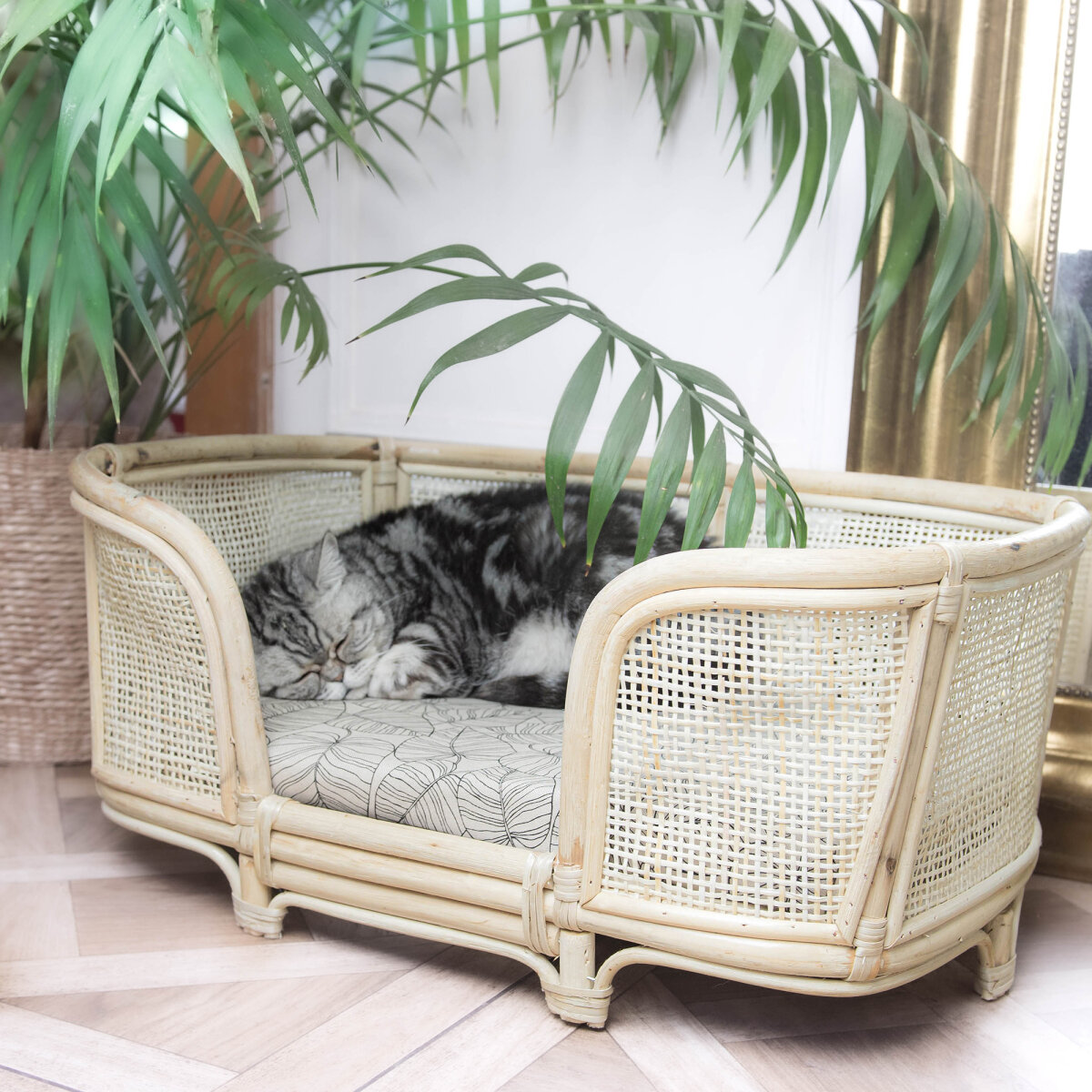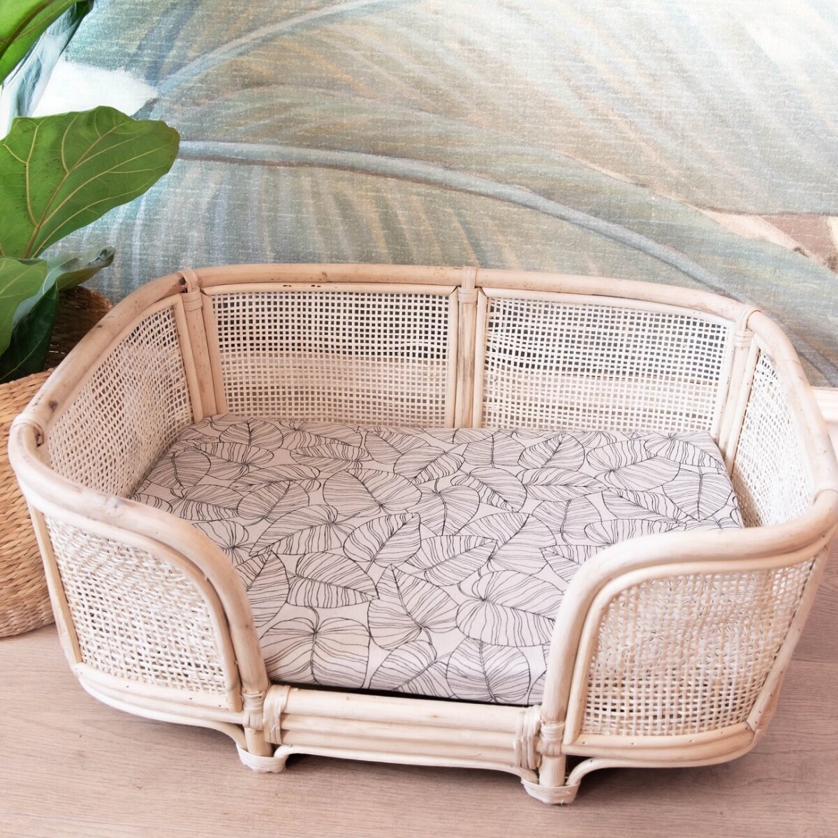 Dieses Haustierbett aus geflochtenem Rattan verleiht Deinem Innen- und Außenbereich einen trendigen Bohème-Look.