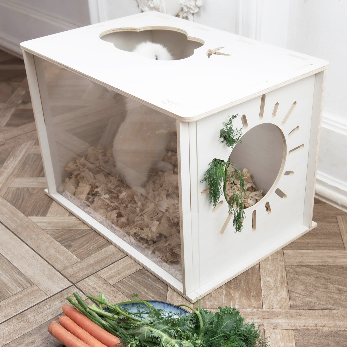 Mit der hopplwerk Buddelbox können sich die Kaninchen nun so richtig ausleben. Verstecken, faulenzen, im Sand buddeln, sich wälzen und der restliche Kaninchenauslauf bleibt dabei auch noch sauber, da nichts hinausfällt. Einfach den grünhopper Buddelsand, Laub, Softwoods oder das grünhopper topping in die Box geben und schon kann es los gehen. Unser neues Design mit einen Eingang in Sonnenoptik und Wolkendesign ist exklusiv bei uns erhältlich.