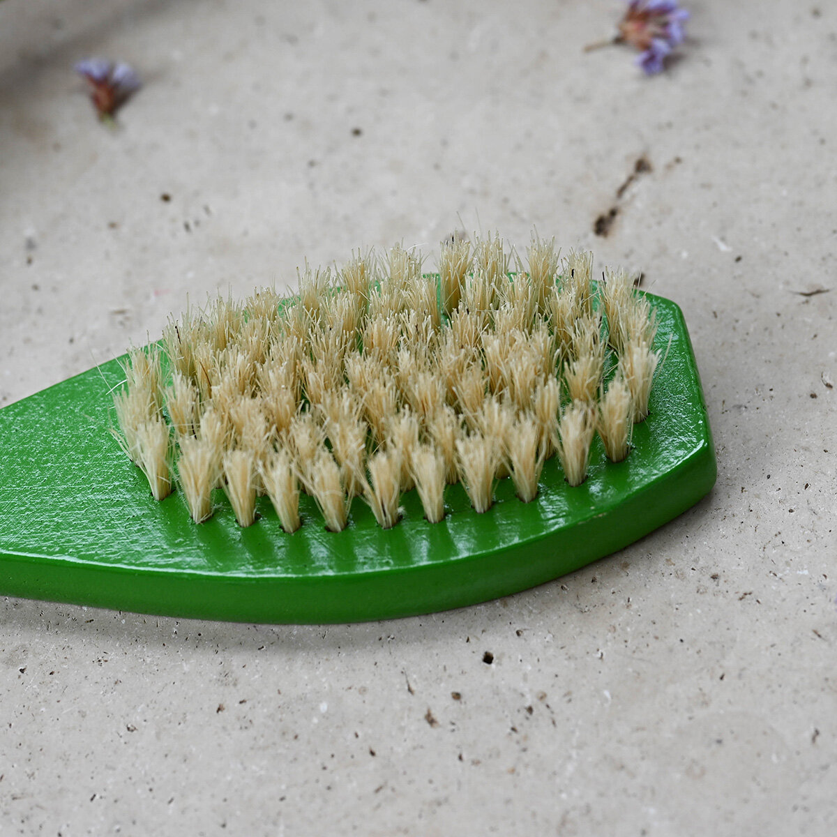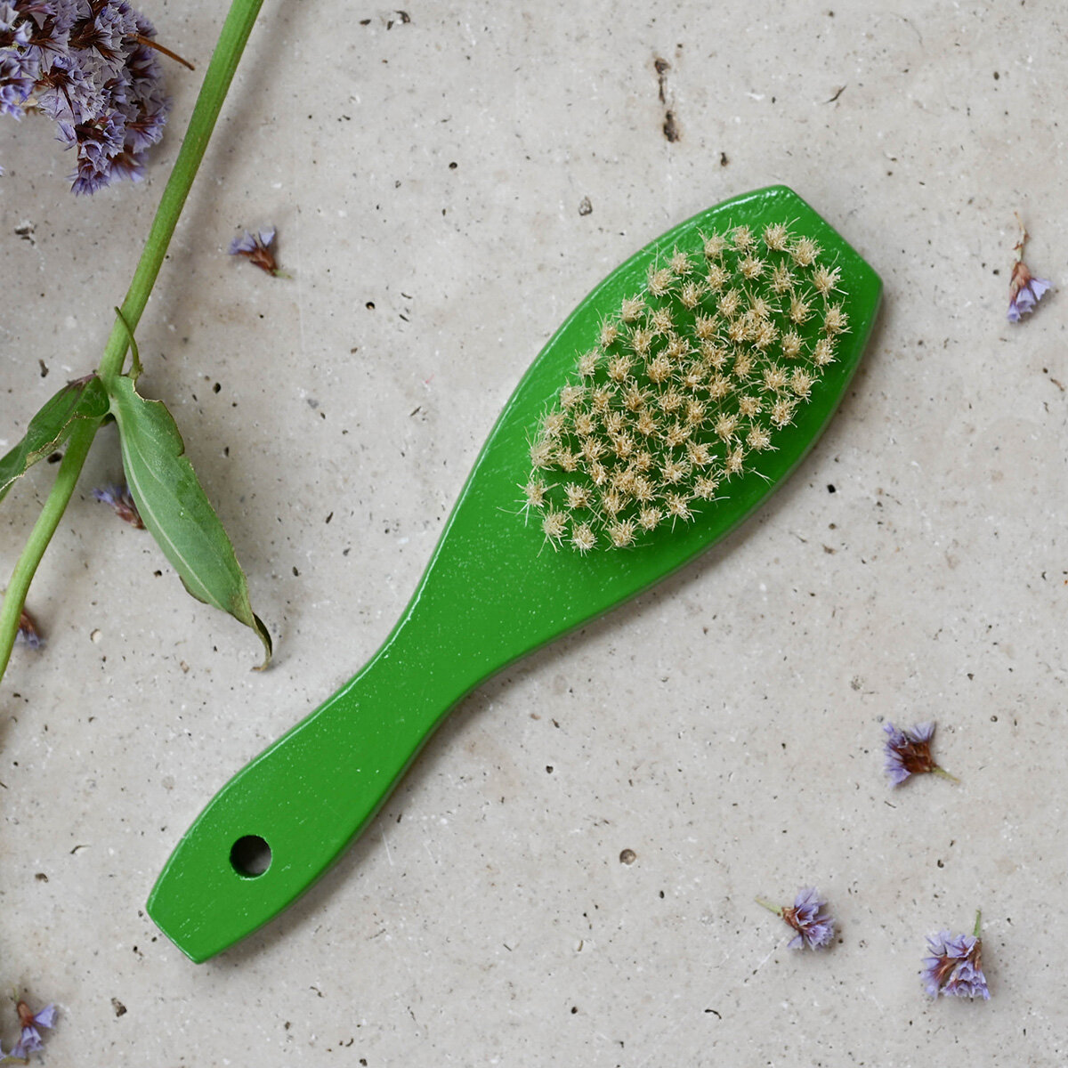 Eine Holzbrüste für die Massage und Fellpflege, das Fell wird sichtlich glänzend.