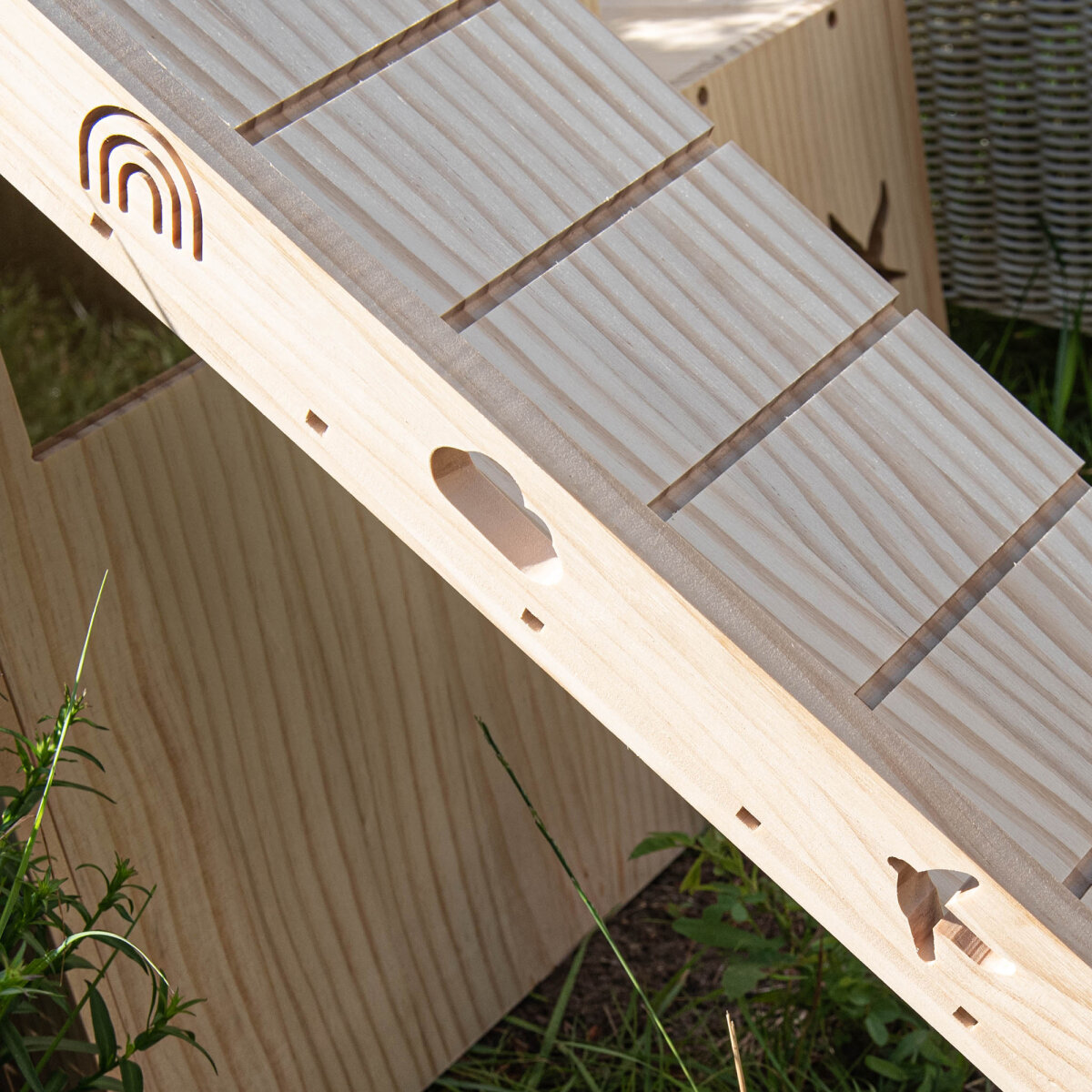 Diese verspielte Rampe könnt ihr überall integrieren. Einfach Häuser verbinden oder Aufgänge gestalten. Unser Hopplwerk Rampe hat wunderschöne Ausschnitte im Wolken-, Regenbogen- und Schwalbendesign.
