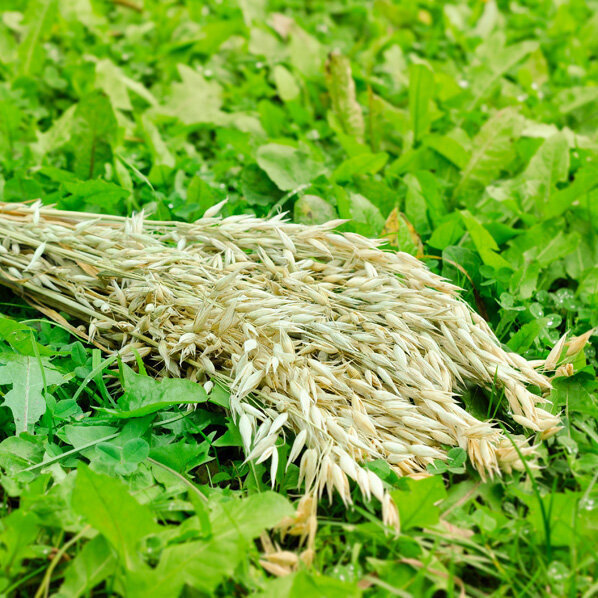 Directement du champ et dans votre enclos - épis d'avoine sur de longues tiges.